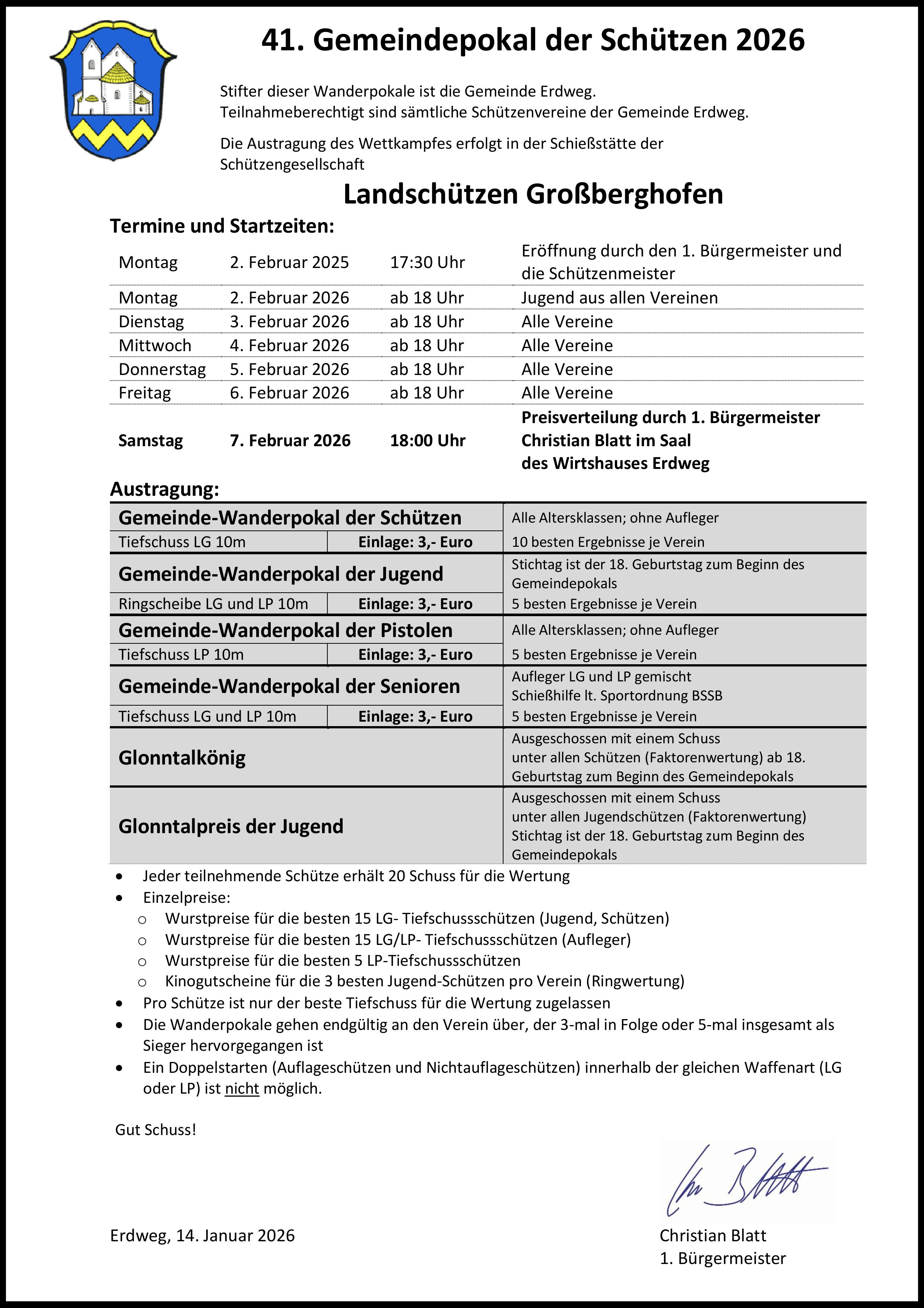 Anfangsscheibe 2025Foto: Josef PerchtoldAm Freitag den 26.09.2025 hat die aktuelle Schießsaison begonnen. Zu diesem Anlass wurde wieder eine Anfangsscheibe ausgeschossen. Im Rahmen der Preisverleihung und Königsproklamation wurde diese feierlich an Peter Wolf überreicht, der diese mit einem 16,7 Teiler gewonnen hat.